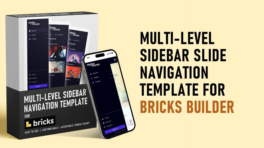 High quality Responsive Sidebar Slide Navigation Template for Bricks Builder with Infinite slide levels. This template comes with a fully setup sidebar & header layout.